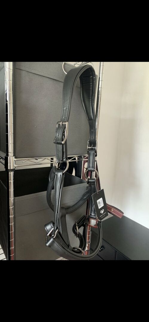 Nytt läderhalsband - Nytt halster, har aldrig varit på hästen. Storlek Full