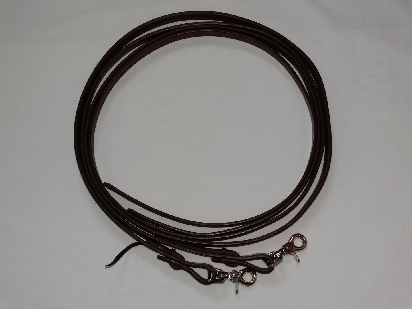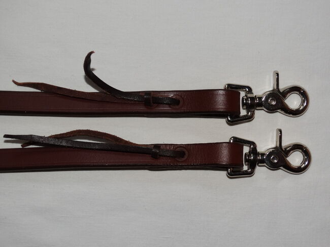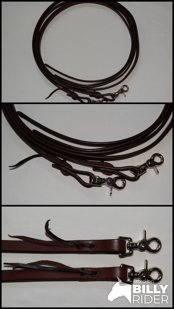 Oanvända westernremmar öppna 155 cm + tryckknappar bruna westernremmar/splitremmar med tryckknappar - Jag har ett par oanvända western tyglar till salu. De var tänkta som ersättare, men jag föredrar att rida med slutna tyglar.