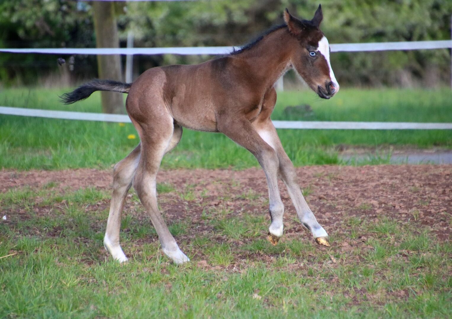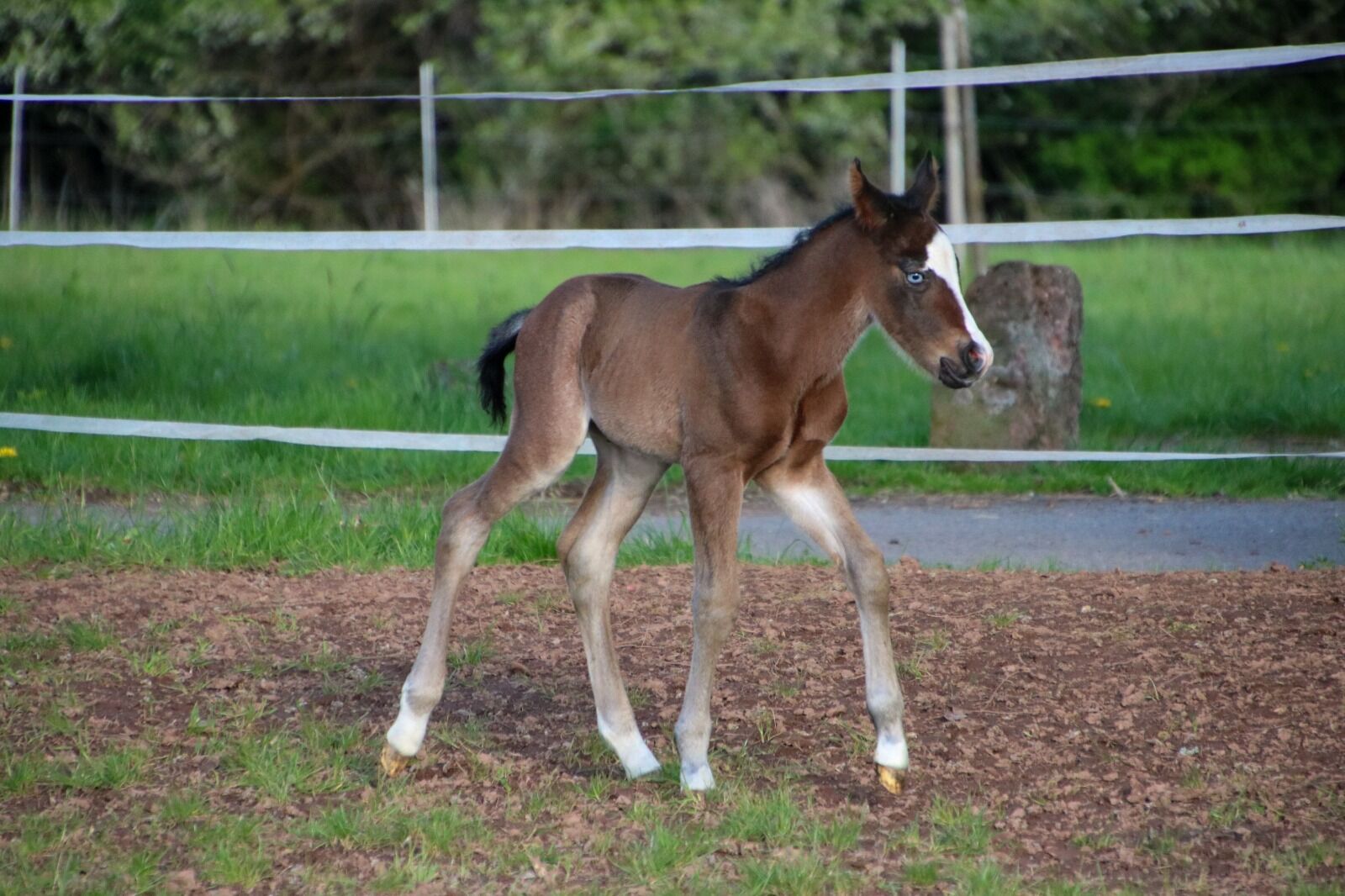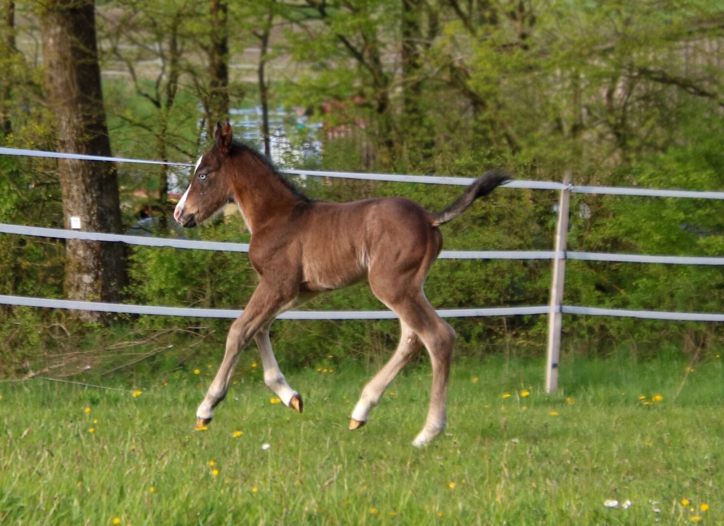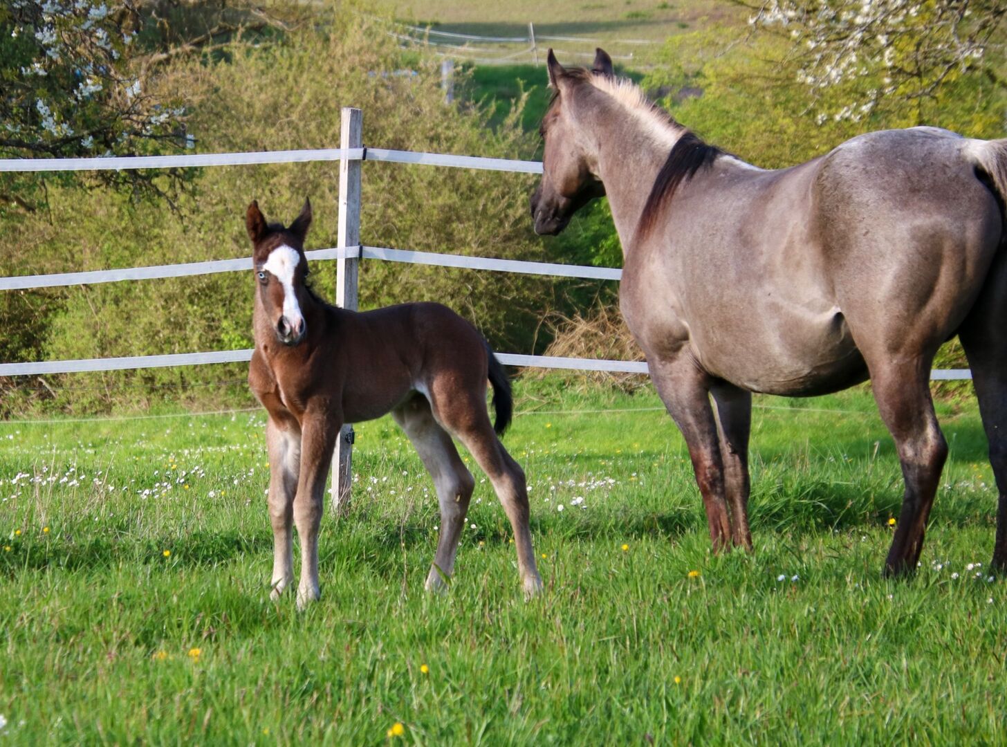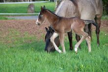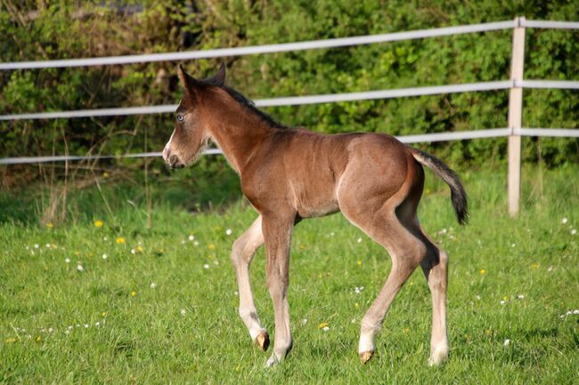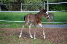 BE My Blue Ice, född den 15.04.2026, är en vacker Quarter Horse-hingst i färgen Bay med en förväntad slutlig höjd på ca 147 till 150 cm. Med sina extraordinära markeringar och sitt uttrycksfulla utseende är han redan ett riktigt blickfång. Han imponerar med sin korrekta, kompakta och starka exteriör och mycket goda muskulatur. Hans rörelser är lösa, elastiska och naturligt atletiska - de bästa förutsättningarna för en senare karriär inom reining eller allroundsport. BE My Blue Ice har en särskilt trevlig karaktär: vänlig, gosig, cool och alltid lätt att hantera. Han växer upp i en flock med andra föl och hanteras regelbundet så att han behärskar fölets ABC när han lämnas över. Hans mycket goda reining- och allroundstamtavla (Spooks Gotta Gun x Joe Cougar Hancock) gör honom mycket intressant för ambitiösa showryttare såväl som för den övre fritidssektorn. Hälsa och avel är högsta prioritet - han är veterinärkontrollerad, presenterad för hovslagaren och regelbundet avmaskad när han säljs. Han kommer naturligtvis att säljas med AQHA-papper och ett hästpass. En unghäst med kvalitet, karisma och bästa karaktär - perfekt som framtida sport- eller fritidshäst med framtidsutsikter. To the seller's offerlaunch