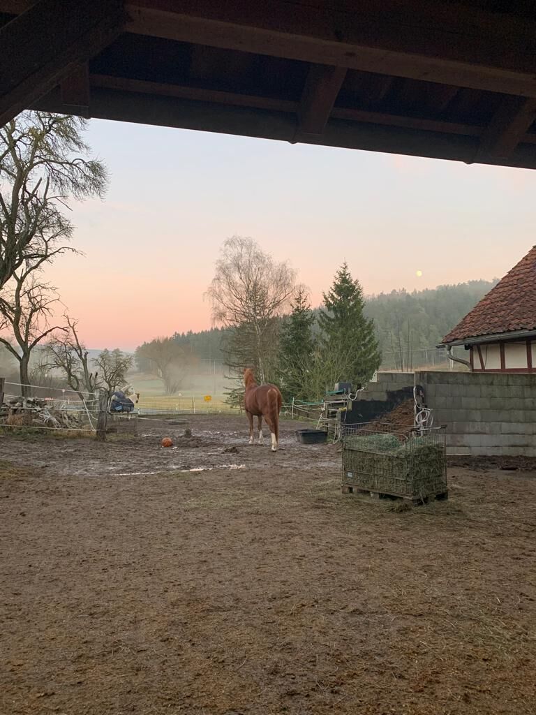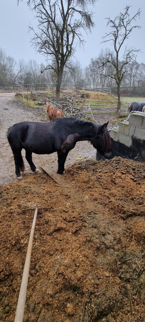 -Öppet stallområde med höhäck och självvattnande tråg