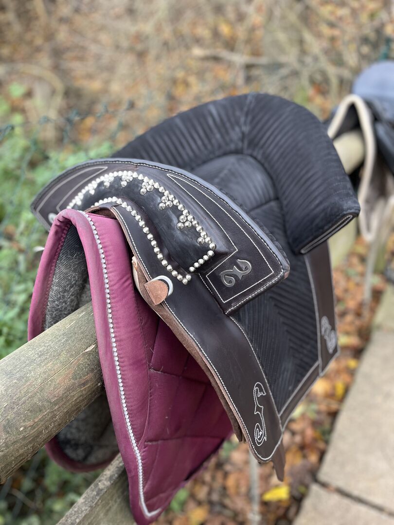 Den levereras med en svart Zalea och, på begäran, en svart rem från Simoes i 125. Dock utan stigbyglar och stigbygelremmar.