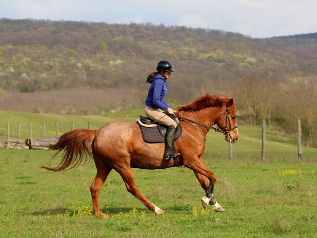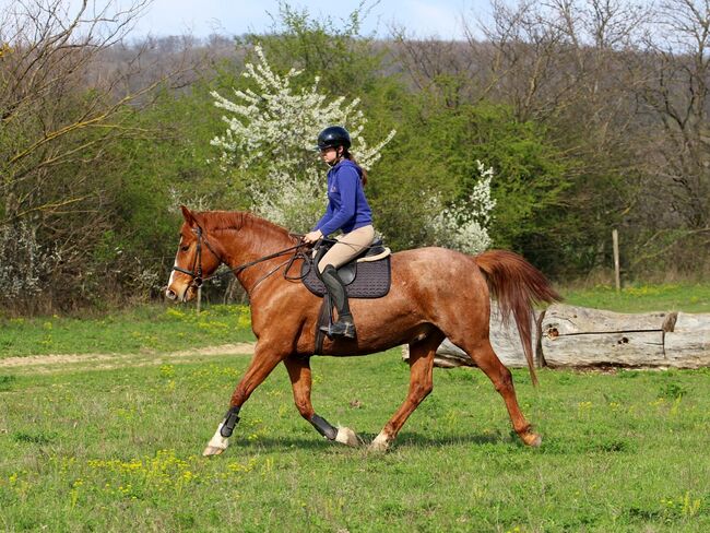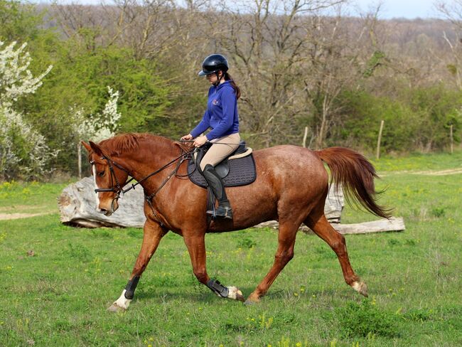 Pålitlig Kisbéri-valack - idealisk käpphäst för fritid och terräng - Május är en 9-årig Kisbéri-valack som är en pålitlig och mångsidig hobbyhäst. Med sin vänliga, avslappnade natur är han en idealisk partner för ryttare som letar efter en okomplicerad häst. Han är motiverad på arenan och i hallen, hoppar mindre hinder och cavaletti och är en säker, avslappnad följeslagare, särskilt på fältet. På grund av sin kraftiga kroppsbyggnad (ca 168 cm) är han också lämplig för större eller tyngre ryttare. Känd för att hållas i öppna stall och boxar, barfota. Möte och hälsning möjligt när som helst (Ungern).