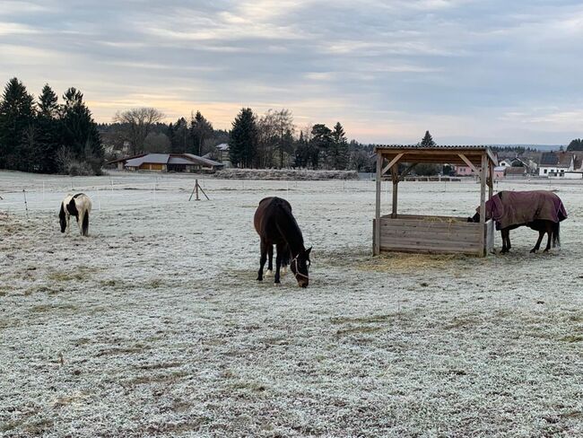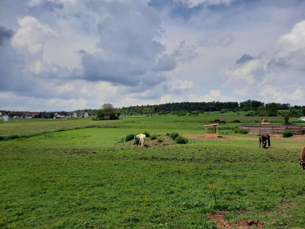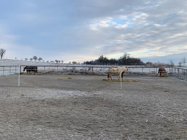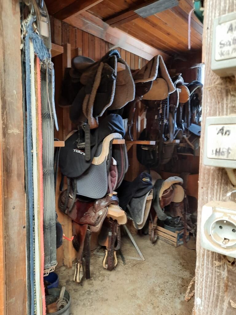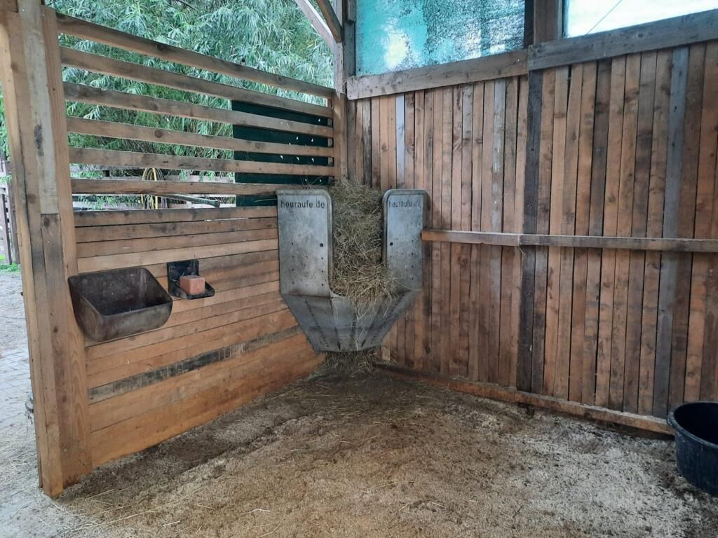 Paddockboxar i lugnt hästpensionat - I vårt lilla (10 paddockboxar, strö av högkvalitativt trämjöl - lungvänligt - mycket absorberande) familjestall finns det fortfarande boxar tillgängliga i olika storlekar. Individuell vård med del- eller helpension är möjlig. Paddock- och filtservice ingår. Tilldelning av mos (pensionärer, ...) möjligt. Beroende på väder, daglig vändning i paddockar / paddockar i lämpliga grupper. Möjlighet till individuell paddock. För hästar med metaboliska störningar, hjorthästar, shetties, ... kan träningsmöjligheter skapas. Följande är tillgängliga: Motionsområde (40x23m, krossad sand, kan användas året runt), rundhage (ø16m), skötselområden på den täckta innergården och utomhusområdet (med duschmöjligheter), omklädningsrum, sadelkammare, foderrum, lounge, grillplats, hundkennel. Priset beror på storlek på häst/box och tilläggsbokning.