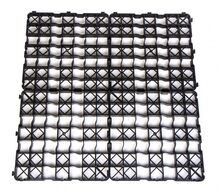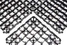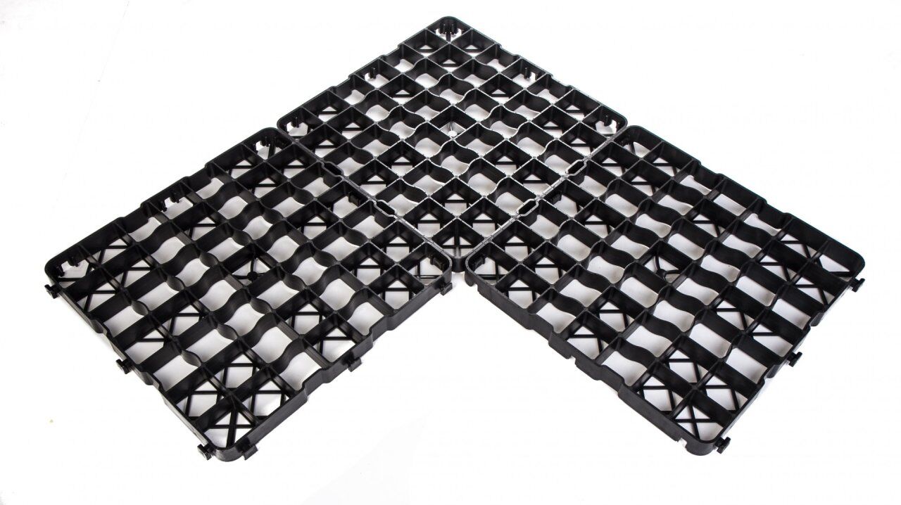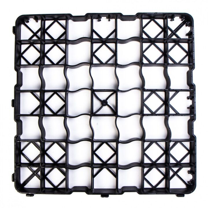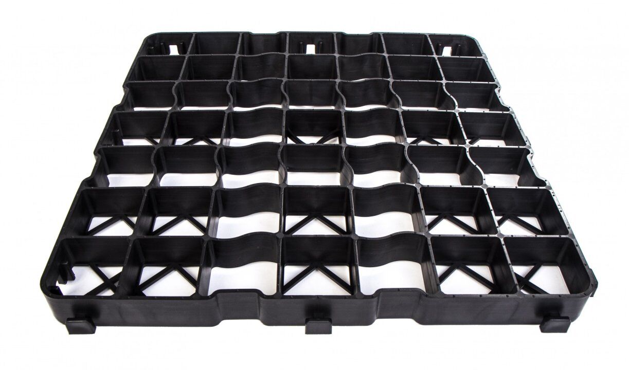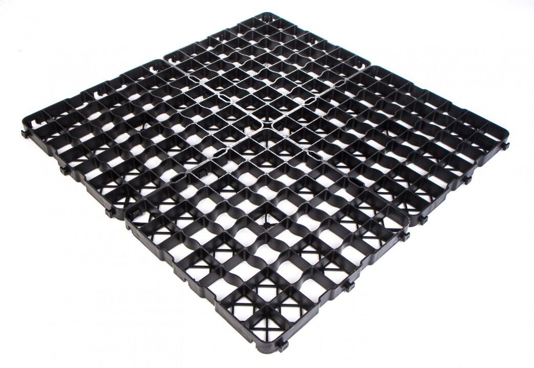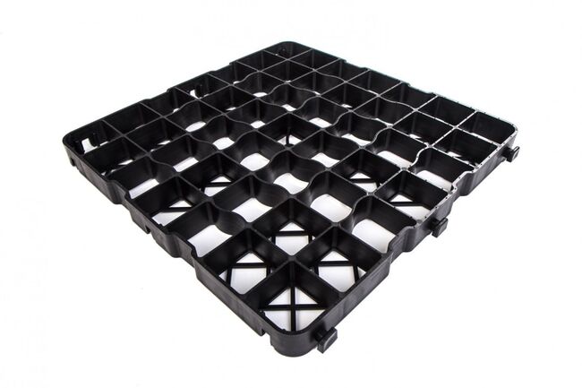 Clevergrid40-Art.0140 Pris 12 € per m² (4 stycken ger 1 m²) inkl. moms för egen upphämtning Tekniska detaljer Storlek 500 x 500 x 40 mm Vikt per m² ca 4,80 kg Väggtjocklek yttre ram 4 mm, inre rutnät 3 mm Rutnätets storlek 68 x 68 mm Råmaterial PE-LD/PE-HD regenererat material Färg svart Användbar yta 4 delar gör 1 m² när de är lagda Belastning 200 t/m² (laboratorievärde)