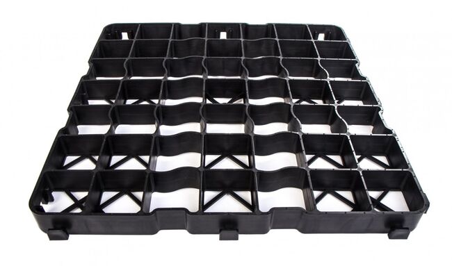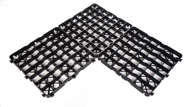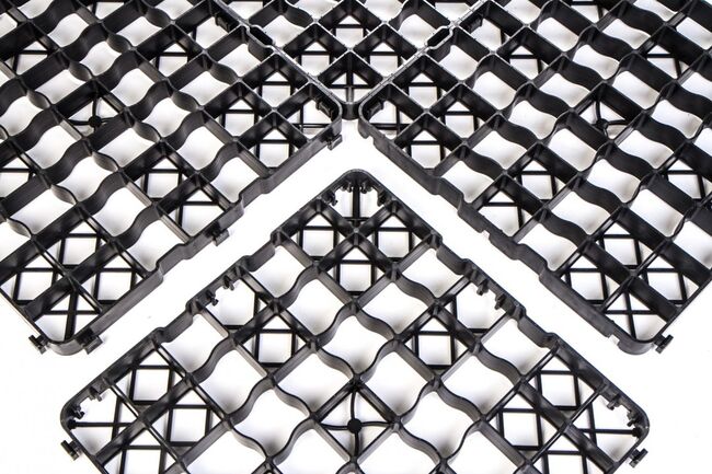 Information om produkten Snabb installation tack vare klicksystem Skyddat säkerhetslåsningssystem Redan till stor del förmonterad på 1 m² Elastisk plast - rekommenderad överlappning på minst 2 cm Kan köras på upp till 2,5 ton (beroende på underlag och fyllning) Stor kontaktyta tack vare stödkors Installation möjlig med minimal underkonstruktion