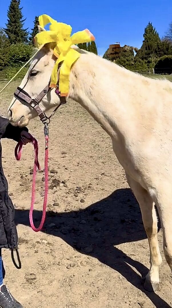 Paint Horse-sto Palomino - Av personliga skäl letar jag efter ett kärleksfullt nytt hem för min unga sto. Hon föddes i juni 2023 (registrerad i hästpasset som 1.1.2023) Fadern är en Quarter Horse, modern är ett Paint Horse-sto.