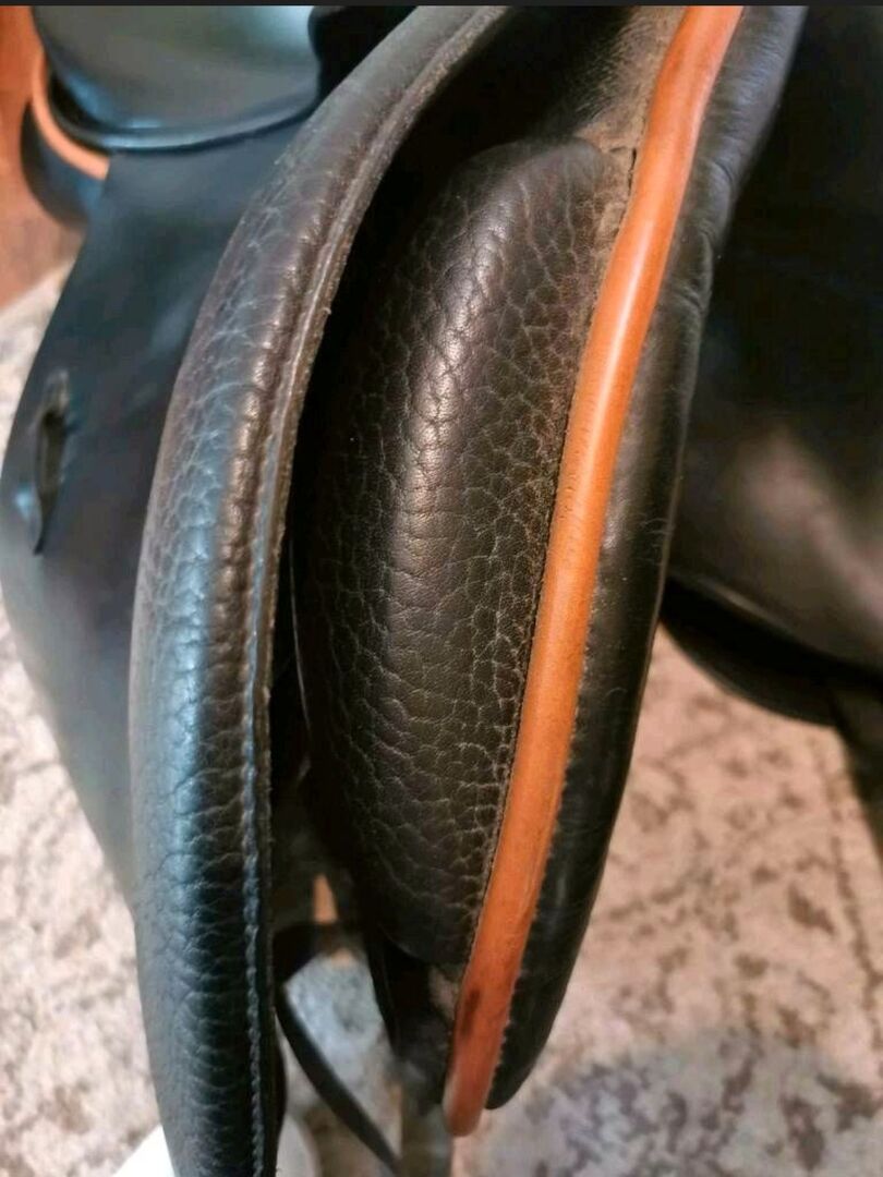 Passier 16 tum dressyr sadel - Vi säljer denna Passier-sadel som är i mycket gott skick och fortfarande har utmärkt stoppning. Vi köpte den begagnad men tyvärr är den alldeles för stor för vår welsh ponny och vi har inte använt den själva. Vår sadelmakare fann att den var i gott skick, så den är redo för en ny ponnyrygg. De tidigare ägarna sålde den eftersom barnet hade vuxit ur 16-platsen.