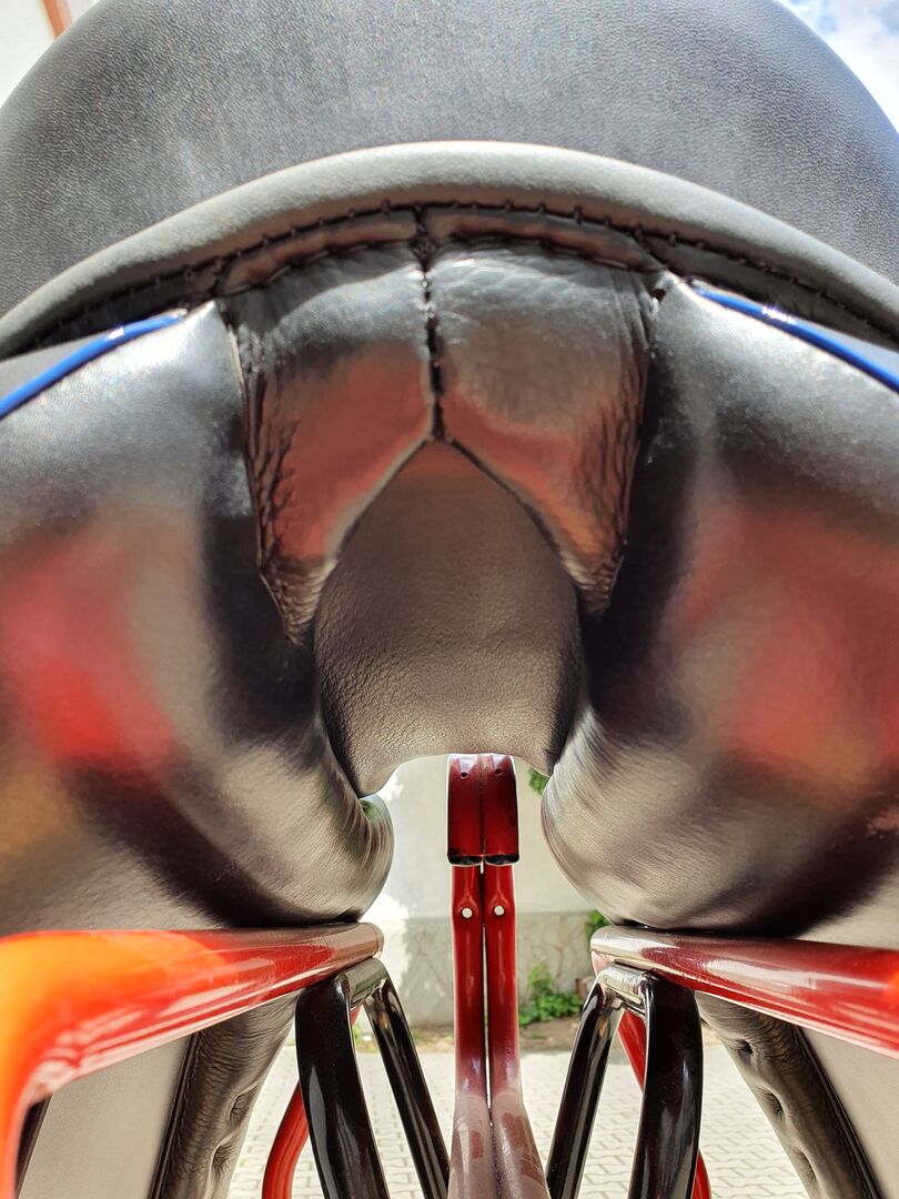 Passier Blu dressyrsadel storlek 16 - nästan som ny - Sällan använd dressyrsadel Passier Blu köptes 2020 till salu, eftersom hästen den köptes till nu har en helt annan rygglinje. Information från Passier om sadeln: