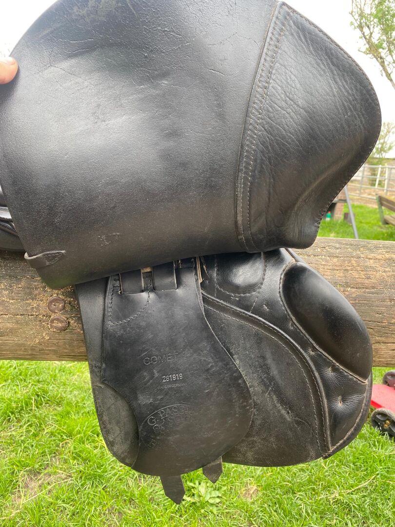 Jag säljer en G.Passier& Sohn hoppsadel. Plats 17. Bredd på gullet 34. Frakt möjlig.