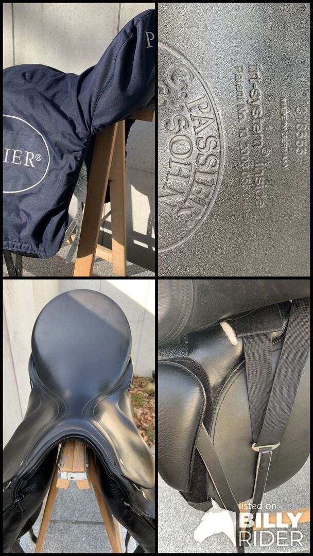 Passier dressyrsadel Sirius 17,5" - Jag säljer min mycket bekväma och välskötta Passier Sirius dressyrsadel Sits 17,5 tum, bredd vid köp 28,5 cm Svart med patenterade läderapplikationer fram och bak Sadel nummer 318555 köpt den 06.02.2019 NP 3700,00 €.