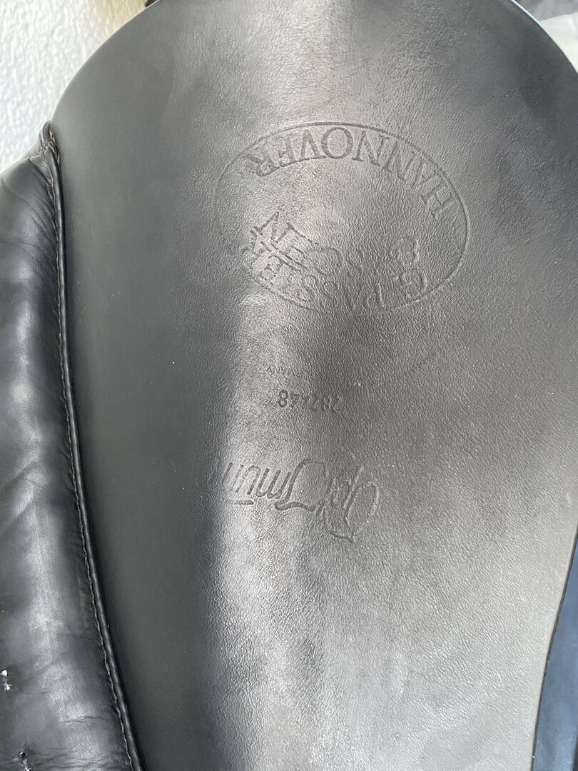 Passier Optimum Dressyrsadel 17,5 tum - Jag säljer min dressyrsadel från Passier Model Optimum, eftersom den inte längre passar min häst. Den monterades på ett smalt byggt varmblod med hög manke. Den satt mycket bra, men vid någon tidpunkt fanns det inte tillräckligt med utrymme vid manken, som nu är mycket uttalad. Sadeln är i gott skick med en liten spricka på sätet (se foto). (se foto). Jag köpte den begagnad och den har vuxit minimalt på 2,5 år. Och jag har använt den mycket. Du kan få det reparerat av en sadelmakare om det stör dig. Jag ville inte, eftersom han skulle ha sytt en bit läder över det och jag skulle inte ha gillat det.
