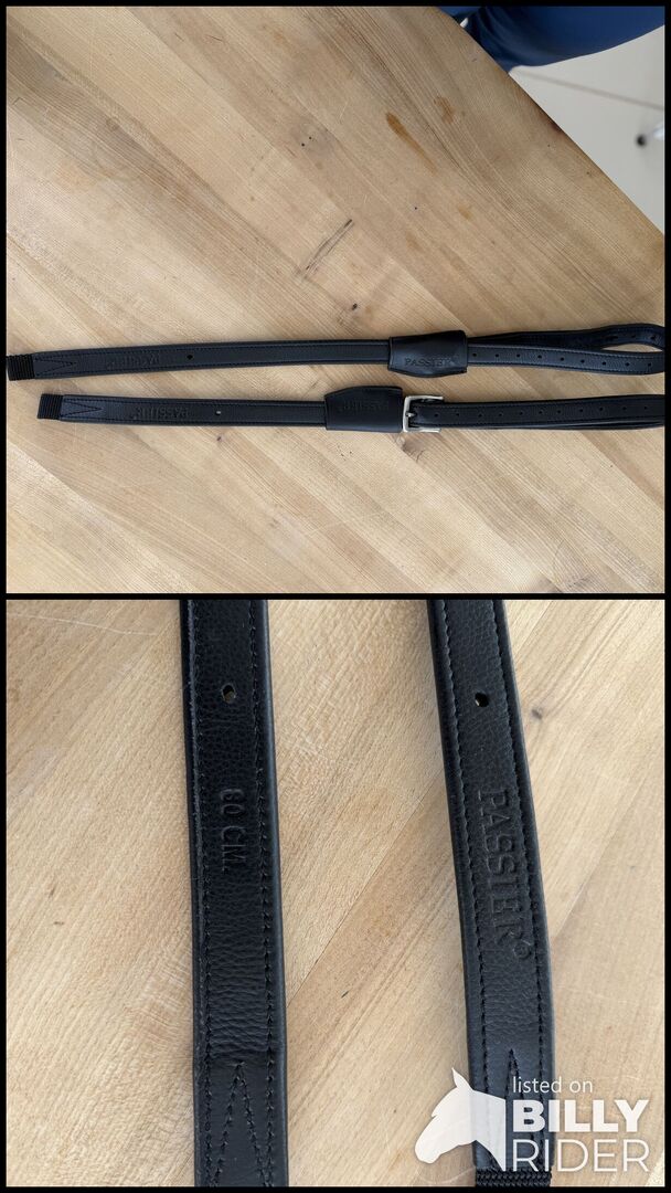 De särskilt smala och mjuka mono stigbygellädren från PASSIER har en särskilt platt fjädring och är inte dubbelt så långa. De är därför inte särskilt synliga under sadelklaffen eller ryttarens ben. Tillverkade av europeiskt kohud med nyloninlägg för extra stabilitet. Detta innebär att remmarna inte kan bli skeva, inte ens under hård användning. Dessutom gör "Velvet Touch"-lädret stigbygelskinnen särskilt mjuka. De specialgjutna spännena i rostfritt stål ger en smidig styrning och skyddas av ett mjukt läderöverdrag. Tack vare sju hål med extra fint hålavstånd kan längden justeras mycket exakt. De kan enkelt fästas på stigbygelns läder på sadeln. De har också ett hål upptill så att de kan spännas fast när de inte används.