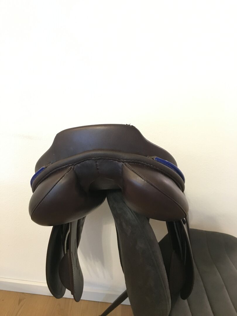 Sadeln har bara suttit på hästen några få gånger. Tyvärr föll den av sadelhållaren en gång under rengöring och har två små skrapor på baksidan - därför säljs den långt under värde. Priset är förhandlingsbart.