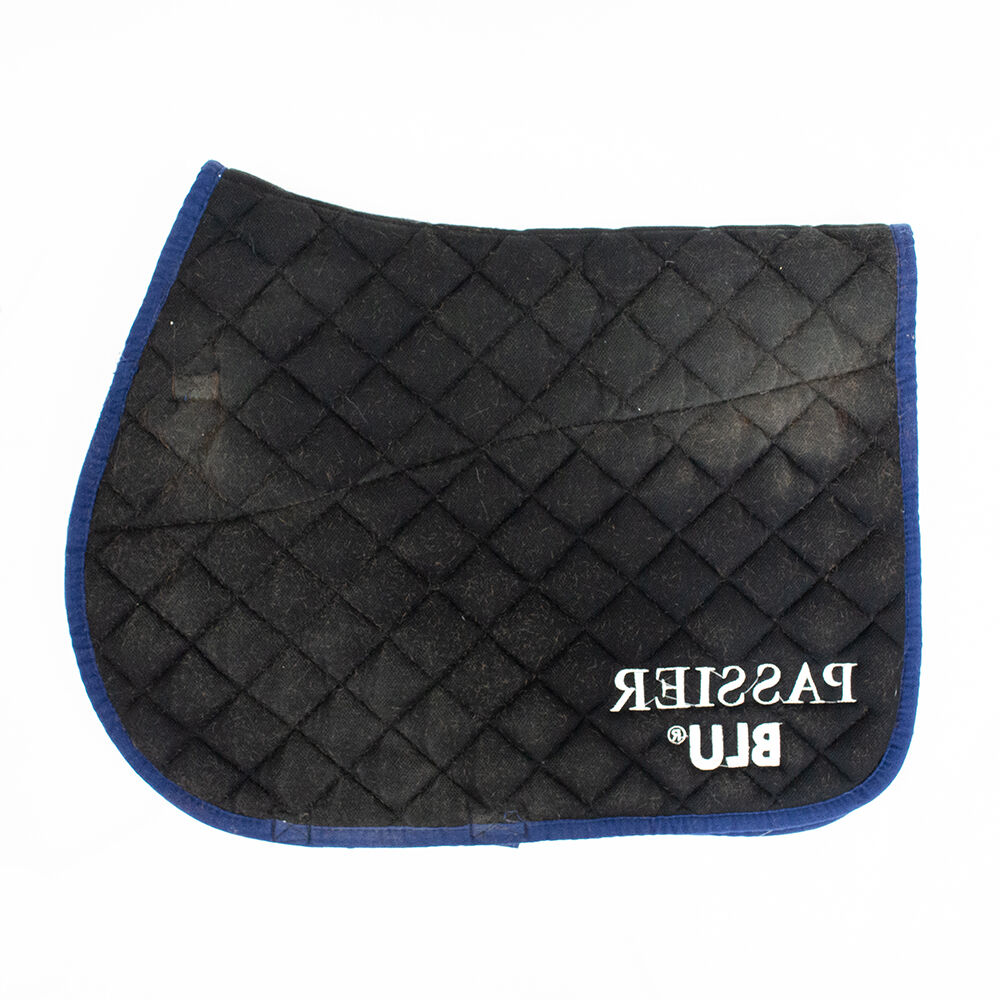 PassierBlu Saddle Pad blå VS - Ett vackert och högkvalitativt hoppande sadelunderlag i blått från Passier. Det innovativa sadelunderlaget har en stor PASSIERBLU-skrift under sadeln av silikon som förhindrar att sadeln glider. Sadelunderlaget är tillverkat av 100 % bomull, vilket inte bara är särskilt hudvänligt utan också skapar optimala klimatförhållanden. Den ackumulerar varken värme eller blir våt. Den kan tvättas vid 30 °C. Sadelunderlaget visar tecken på användning och tyvärr kan det inte avhåras optimalt, vilket är anledningen till att det fortfarande finns hästhår på sadelunderlaget. To the seller's offerlaunch