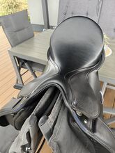 Sadeln är i mycket gott begagnat och väl underhållet skick. Den har endast några få tecken på slitage på den vänstra sadelklaffen. (Se foto) Sadelns storlek: 17"