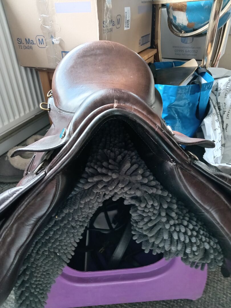 Beautiful well looked after medium saddle cleaned after use and balmed so the leather is soft and supple. Very comfy for rider I'm going to miss it but just does not fit my mare anymore.