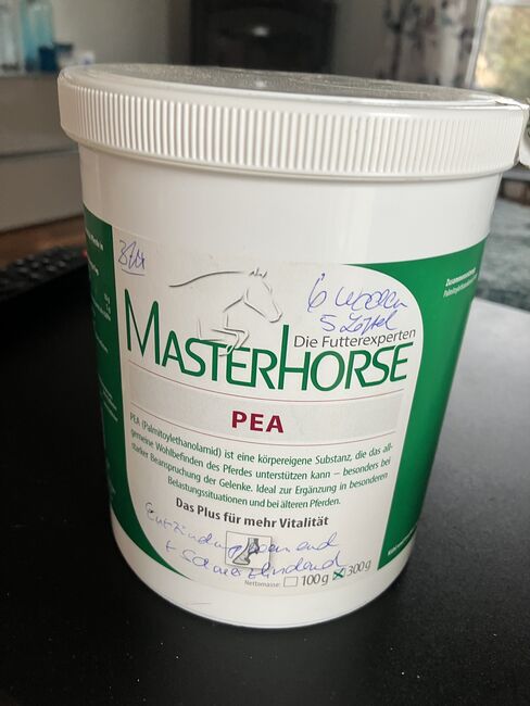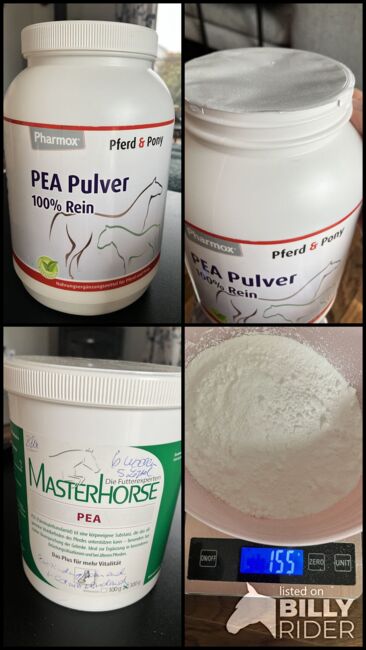 PEA-pulver 100 % 500 g från Pharmox (och Masterhorse) - Ny och oöppnad, bäst före 31.12.2027 för 85 euro. Nytt pris 99,95 Euro På toppen öppnade PEA från Masterhorse 150 g gratis. Privat försäljning, ingen garanti