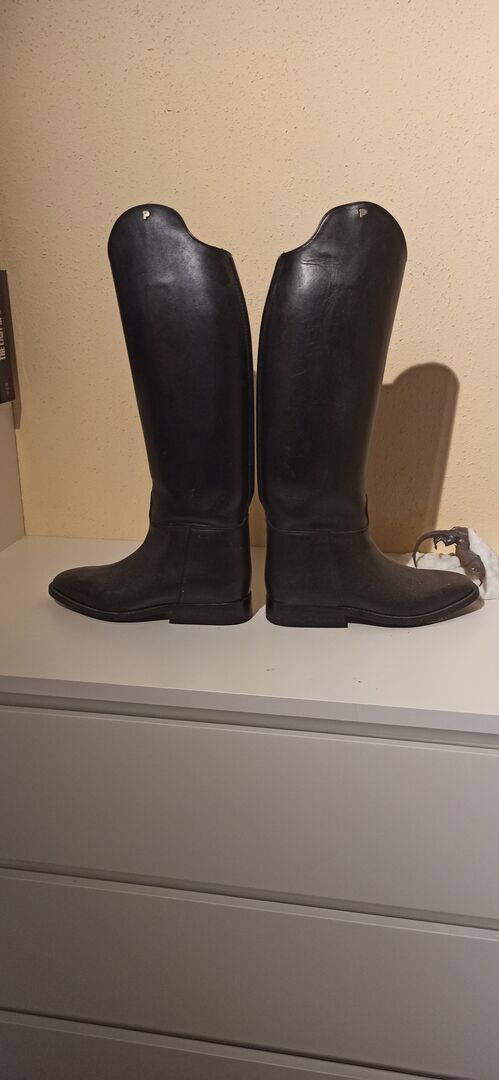 Jag säljer Petrie ridstövlar, modellen heter Anky och har en hög dressyrbåge.