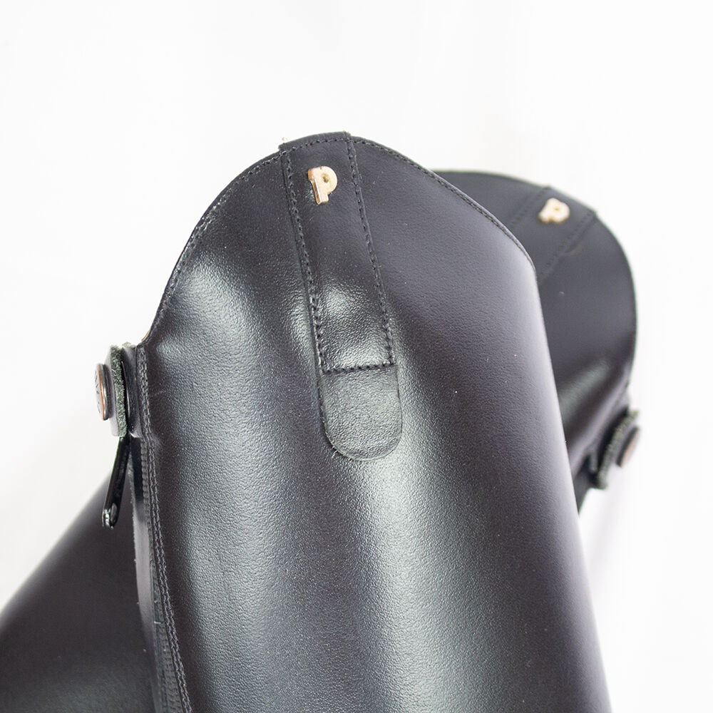 Petrie bootleg "Chaps" svart HS 2-3 36 32 - De stora Petrie-kakorna är en klassisk skönhet. Petrie står för högkvalitativa material och stor hållbarhet. Chapsen har en praktisk dragkedja och ett läderfoder. De svarta chaps i läder av kohästskinn är i gott skick. De har endast sporadiska tecken på användning. Stövelskaften är storlek 2-3 (HS), höjd 36 och bredd 32. De har också ett elastiskt inlägg som garanterar bästa passform även om benomfånget är något annorlunda. To the seller's offerlaunch