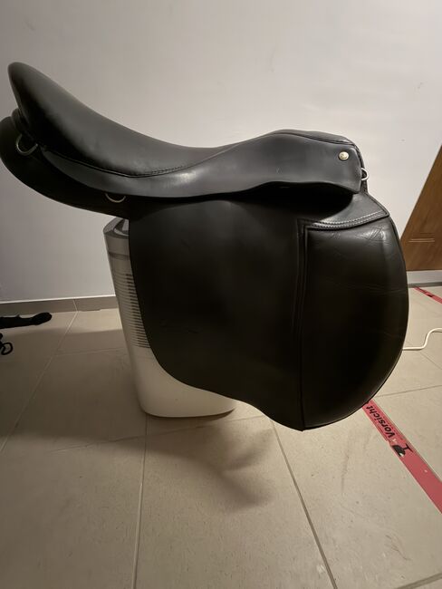 Piet Hoyos sadel för häst med gångjärn (Trieb) - Jag skulle vilja erbjuda dig min bekväma sadel från Trieb-företaget. 17,5 tum Det är en äldre modell, men i gott skick. Tecken på användning som kan ses på bilderna och har alltid förvarats korrekt. Besiktigad av sadelmakare och godkänd för vidare överlåtelse.