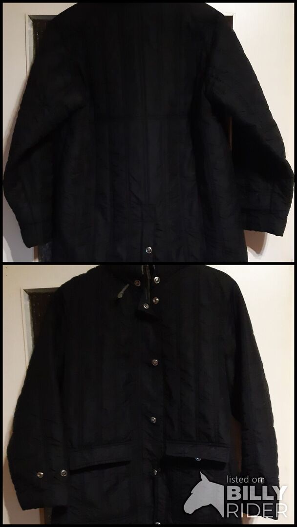 Den har en dragkedja som täcks av en knapp. Den har den typiska ridspringan för ridjackor, också med tryckknappar. Det finns två påsatta fickor framtill, som också stängs med tryckknappar. Det finns en huva i kragen på jackan.