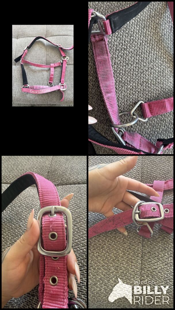 Pinked Crownhorse Halter storlek Cob - Jag erbjuder en begagnad, men mycket välbevarad grimma från Crown Horse. Vänligen kontakta mig om du är intresserad.
