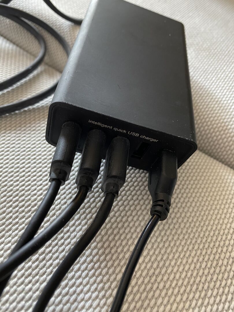 The robot and beacons are completely new. The chargers don’t work very well but everything can be charged with a regular Samsung phone charger.