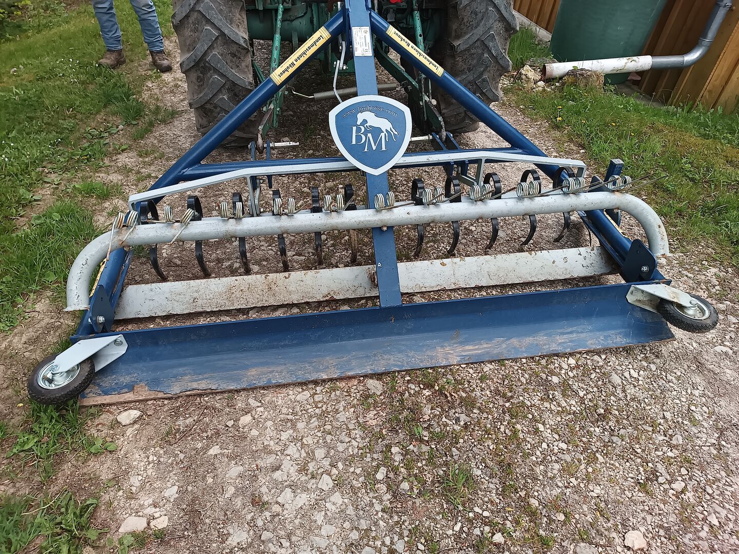 Denna ridhusplanare har en arbetsbredd på 2 000 mm och är väl lämpad för permanent underhåll (luckring, blandning och utjämning i ett enda arbetsmoment) av många ridytor.