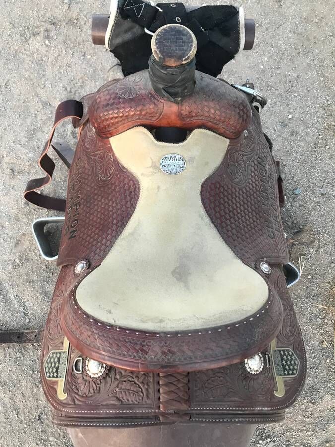15” seat Dale Martin team roping saddle. It is in excellent condition. Has the original crooked stirrup. Comes with front and back cinch. Fits everything. FQH bars. Quality saddle