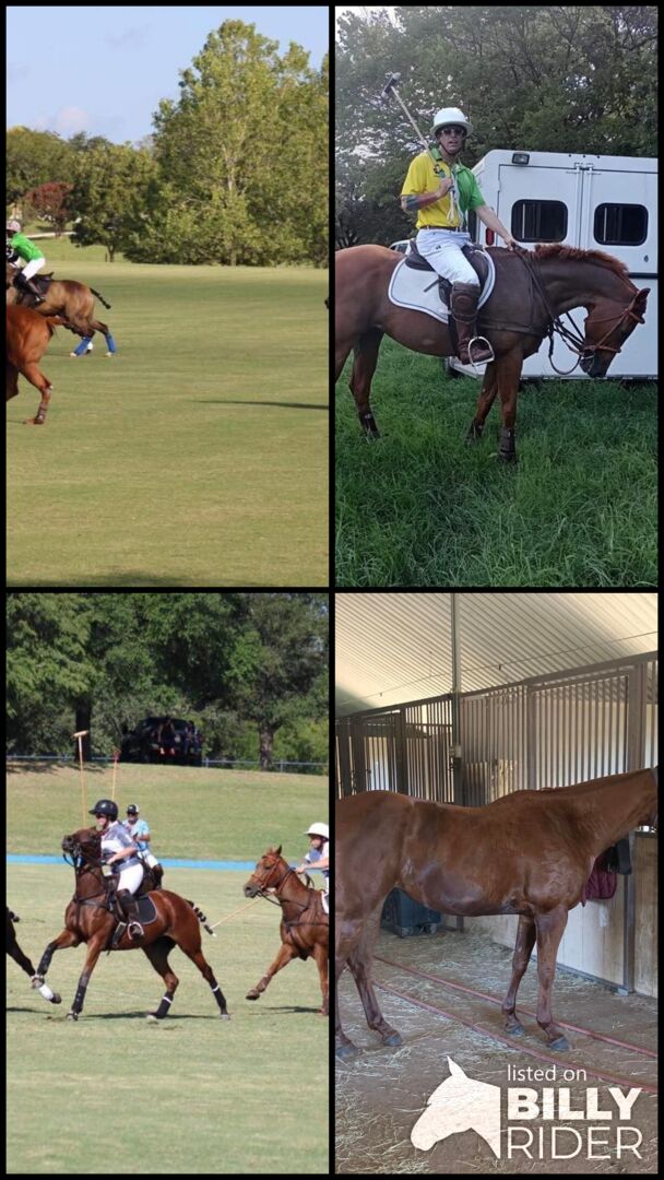 15.2hh chestnut mare. Played indoors and outdoors. Suit intermediate Rider. Snaffle mouth. Good to load, tie up and trim. Back in work this week. Only for sale as we are moving back to the UK.