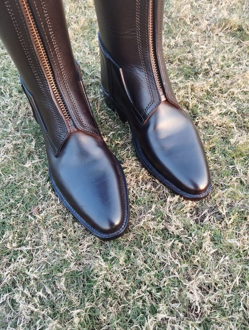 Our boots are made from original leather, ensuring they're strong and long-lasting. Unlike cheaper boots, we stitch our soles instead of just gluing them, so they'll stay together longer. Plus, they have extra support in the heel and toe to keep your feet safe and comfortable. We pay close attention to every detail by using brass Ykk zip and all.because we're proud of the quality we offer. That's why our polo boots are the best you can get.