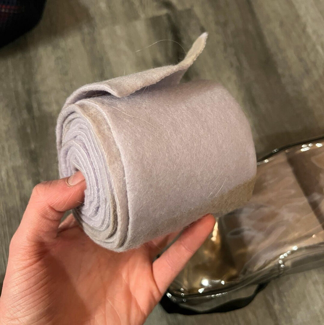 Ponnybandage lila - Begagnade bandage för ponnyer och fullblod med smala ben till salu. Bandagen kommer naturligtvis att tvättas igen före avsändning och finns redan i tvättmaskinen. Färgen är en vacker lila. Bandagen förvarades alltid torrt och när de var blöta torkades de först och rullades sedan upp.