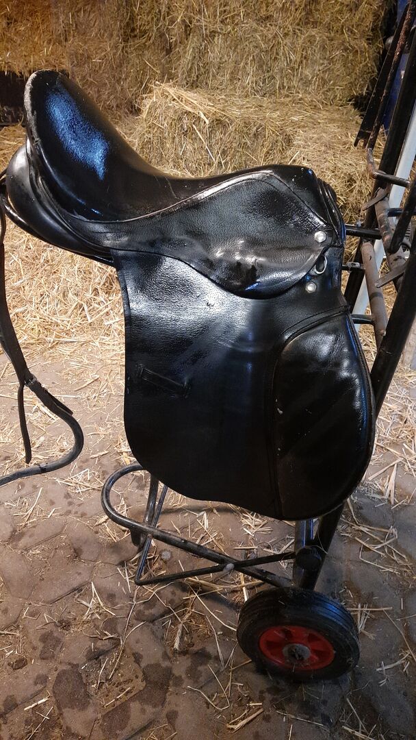 Ponnysadel - Begagnad men välbevarad ponnysadel till salu. Vi använde den på en stor, bred Shetty. Med crupper i gott skick. Se bilderna för skador.