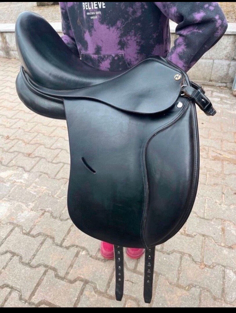 flexibelt syntetiskt träd med individuellt breddjusterbar kotlettplatta rundade sadelpaneler med individuellt justerbar polyesterullsfyllning, bred panelkanal och mycket frihet vid manken tack vare eliminerat panelhuvud långa sadelgjordsband, från sätet och som breda V-girthing balanserad, djup sittkurva och tydligt avsmalnande midja i kombination med välproportionerade lårrullar för en mittställning som svänger med ryttaren Mjukt sadelsäte för maximal komfort avsiktligt enkel design sadelsits och sadelväskor tillverkade av bästa europeiska sadelläder