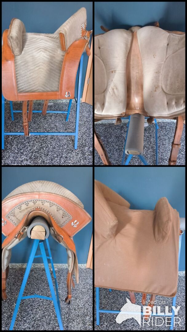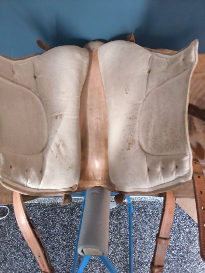 Sadeln är begagnad och har få tecken på slitage. Den är 1st hand och skräddarsydd i Portugal