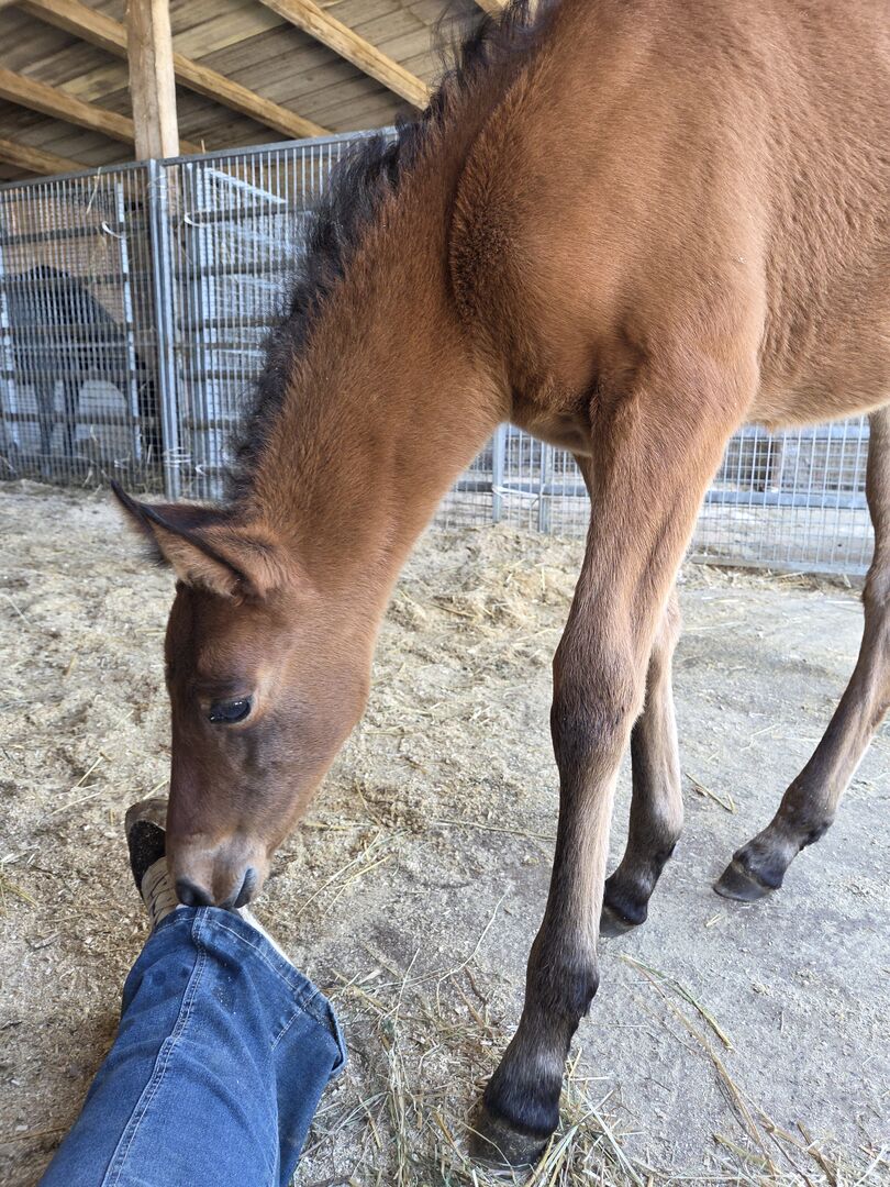 PRE-föl föl med ANCCE-papper. - Wanda Kubny är ett PRE-sto som ser ut som om hon har målats i färgen brun. Båda föräldrarna har en stamtavla från Yegada Militar. De är kända för hästar med mycket starka nerver och klara huvuden. Detta märks tydligt hos båda föräldrarna såväl som hos Wanda. De goda och korrekta gångarterna från båda föräldrarna har också överförts till Wanda. Wanda kommer att bli ca 162-165 cm lång. Mina föl lämnar alltid med en välsittande föl-ABC, men de kan också stanna hos mig för vidare uppfödning. Wanda får fullt ANCCE-papper. Hon kommer att vara kvar hos sin mamma Mar Wendolina till september 2025. Hon kommer att avmaskas flera gånger under denna tid. Hon känner till andra lantbruksdjur som hundar, katter, kor och alpackor. Wanda känner också till jordbruksmaskiner och barn som leker.