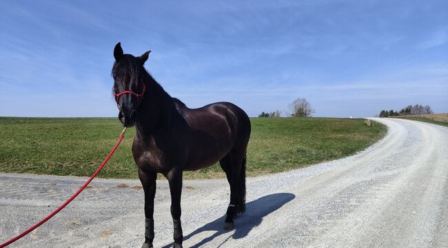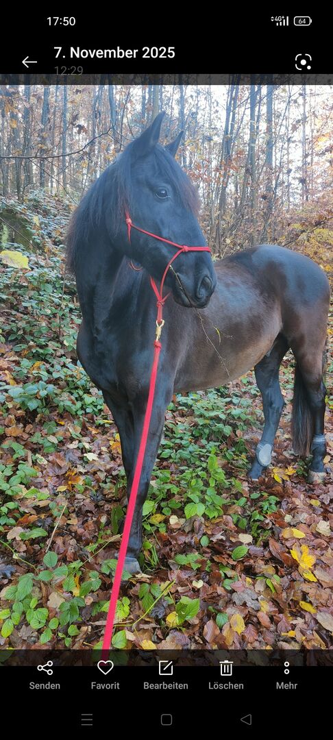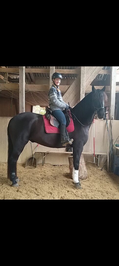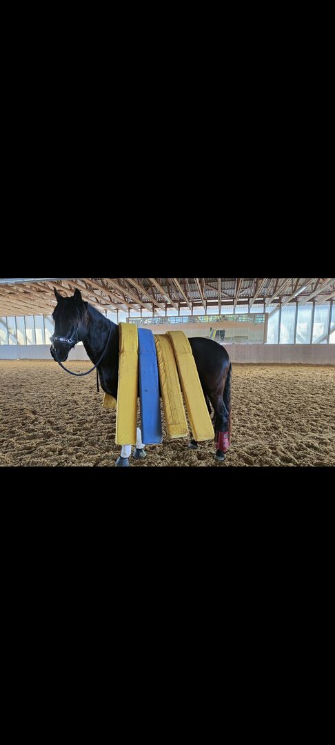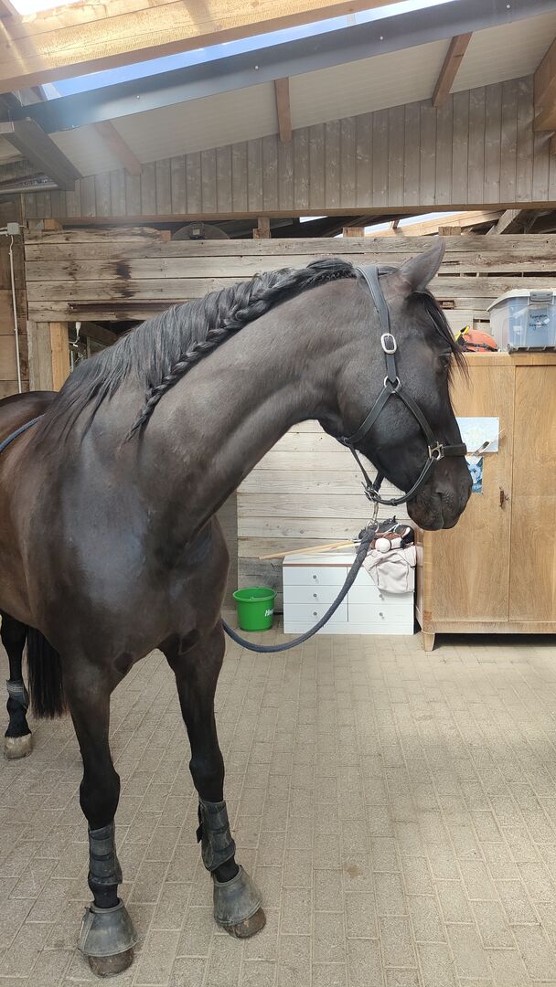 Jag ville faktiskt använda honom som terapihäst, men tyvärr är han inte lämplig för detta. Därför skulle jag vilja hitta någon som kan fortsätta att stödja honom och ge honom den tid han behöver. Han är jättebra med markarbete, longering, hovslagare, ridning i arenan och i hallen. Han är mycket villig att göra saker ordentligt och lär sig mycket snabbt. Han har mycket potential för dressyr, är mycket fin på hjälperna och behöver en stadig hand. Han har mycket "go" i manegen, där han behöver mycket trygghet och någon som är erfaren. Så han är inte en nybörjarhäst.