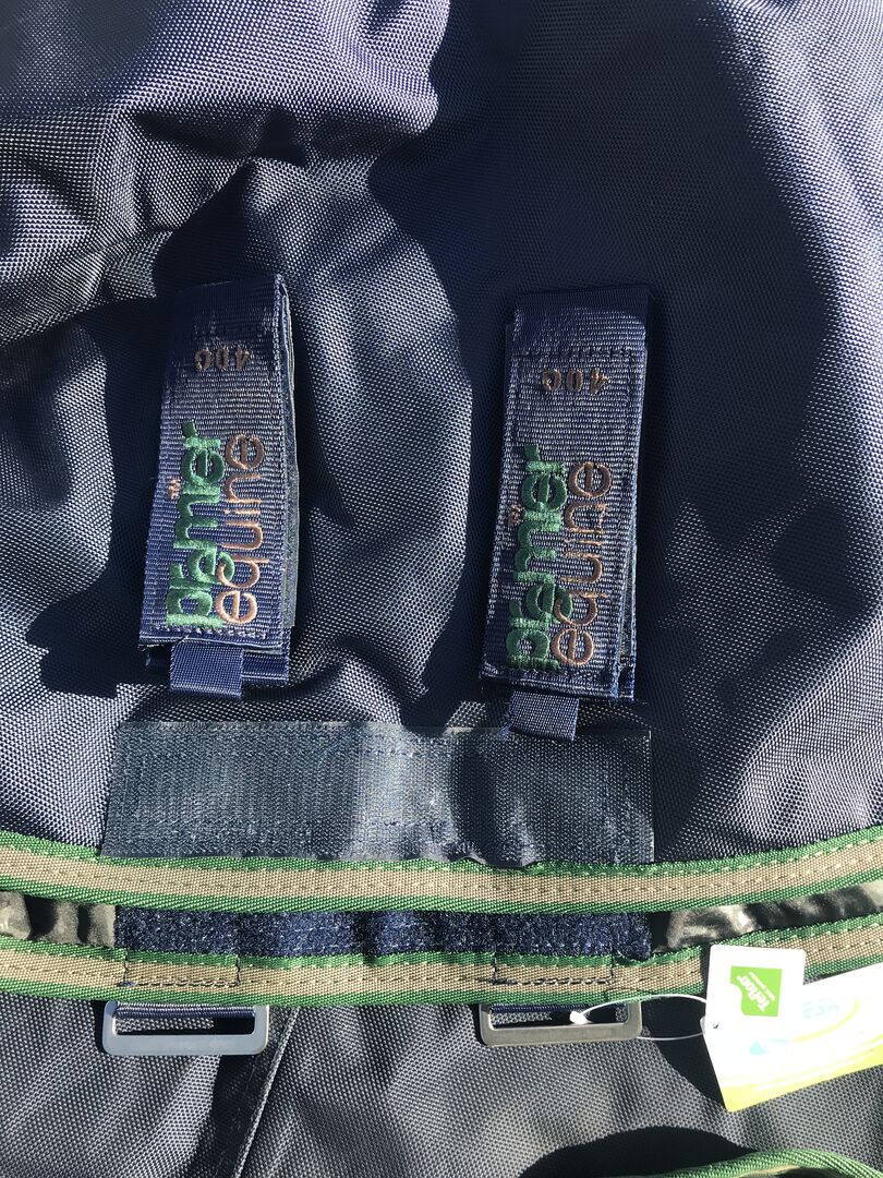 Premier Equine Outdoor Blanket Titan 40g, 6"6' 145cm - Säljer en Premierequine Titan utomhusfilt med 40g fyllning! Det är en storlek 6'6", mätt 164cm! Den är ganska lång på sidorna och halsen är också ganska hög! Tillverkad av 1680 Den ballistisk nylon! Den har bara använts en kort tid, tyvärr har några lätta fläckar inte gått bort! Den har inga skador! Halsstycket ingår och är NYTT! Den är i storlek M och har också 40g fyllning! Benlinor ingår, svansremmen saknas tyvärr....