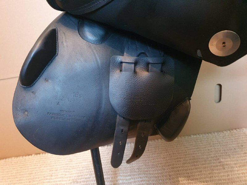 Dieser elegante 16,5-Zoll Meyer Springsattel überzeugt durch seine erstklassige Verarbeitung und sein sportliches Design – ideal für ambitionierte Reiter im Parcours.