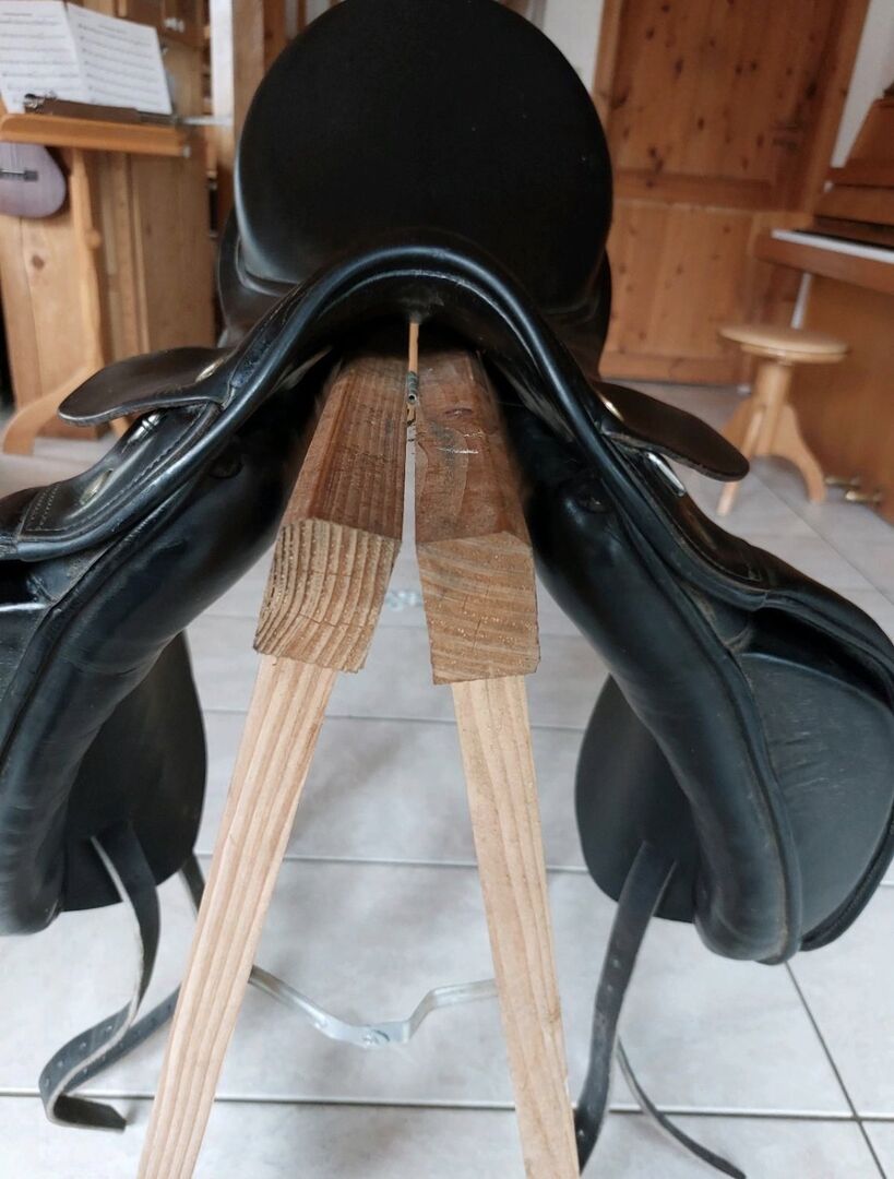 Mått på sadeln: - Valvbredd mellan knapparna 16cm - Längd på klaffen 40/41 cm - Diagonal (fågelvägen) sittyta från sadelknapp till centrum av bakre pommel ca 45 cm - Sittyta (som kråkan flyger) från mitten av främre till mitten av bakre pommel 41cm