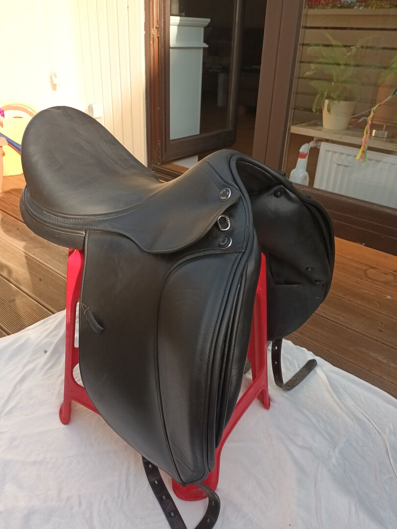 Prestige dressyrsadel X-Helen FS 17 tum - Jag säljer min dressyrsadel från Prestige modell X-Helen FS i mycket gott skick och knappt använd av hälsoskäl med en sits på 17 tum och en kammarbredd på 33. Jag har fått knärullarna ersatta med kardborrerullar. Det nya priset i februari 2021 var 4 200,00 euro.