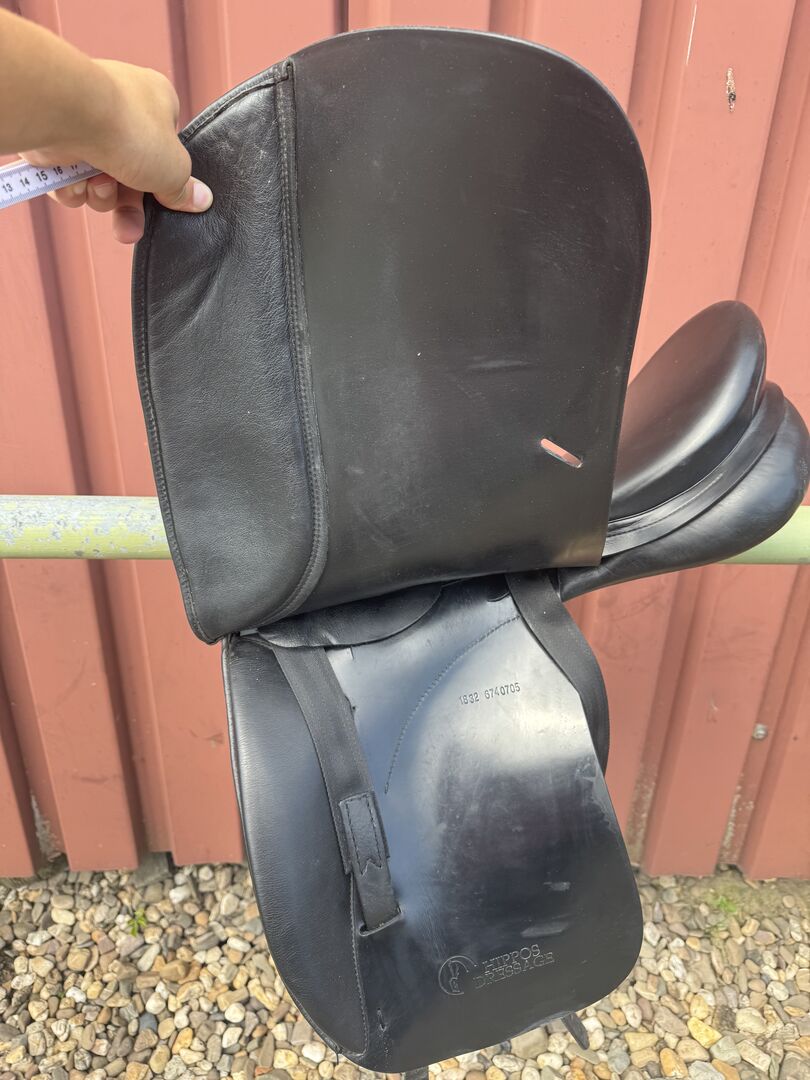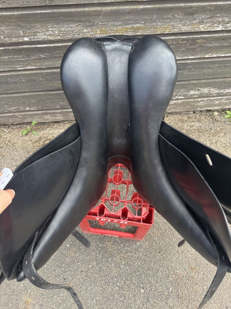Prestige hippos dressyrsadel för dressyr 18/32 - Jag säljer min Prestige Hippos Dressyrsadel i svart Sadeln har en sitsstorlek på 18 tum, kammarens bredd är 32 och kan naturligtvis justeras av sadelmakaren. Sadeln är i gott begagnat skick och visar normala tecken på slitage (se bilder) Frakt och upphämtning möjligt. Privat försäljning, ingen garanti eller retur.