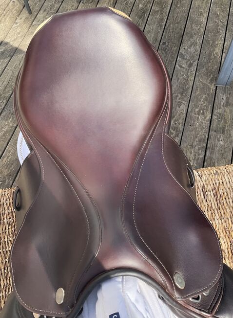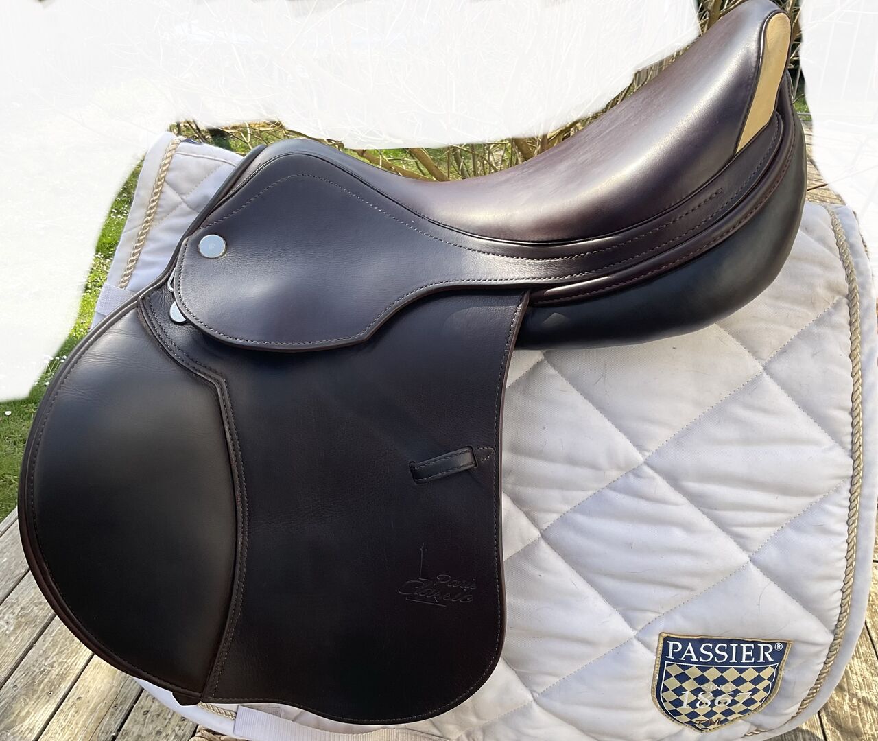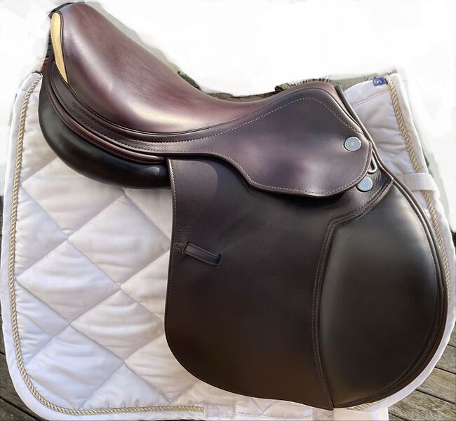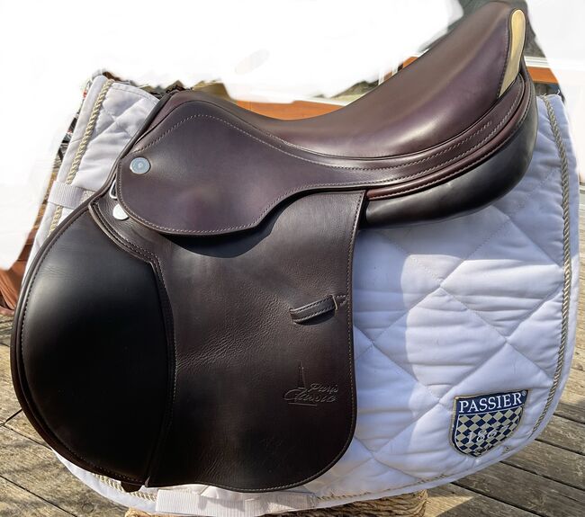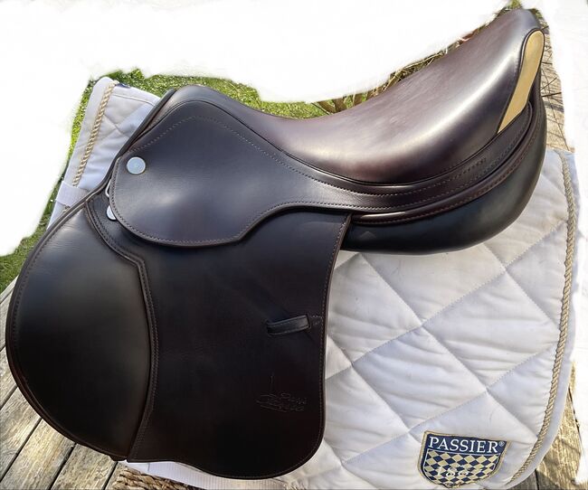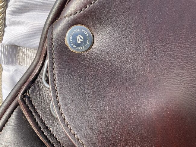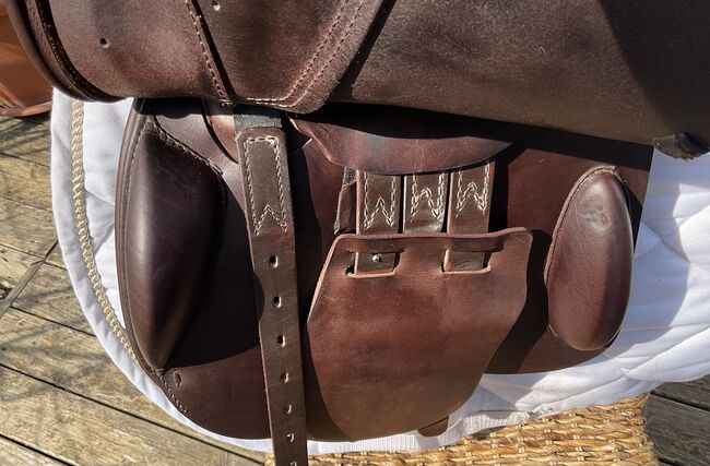 Prestige hoppsadel Classic Paris 17"/35 i mycket gott skick - Mycket fin och bekväm hoppsadel, även lämplig för ridning och normalt dressyrarbete. Inga skador eller repor, stoppningen är fast och har blivit omstoppad. Sadeln har en 35 mm kammare och en 17 mm sits, vilket är lämpligt för små och normalstora ryttare. Färgen är cognac, en varm nyans av brunt, lädret är mycket mjukt och dubbelt. Sadeln köptes 2023, originalfakturan från sadelmakaren finns tillgänglig (NP: 3200 euro) Stigläder i matchande färg (135 cm) och en Passier anatomisk lädergördel för att matcha (125 cm) kan köpas på begäran och mot en extra kostnad. Allt är i mycket gott skick och väl omhändertaget. Sadeln har alltid förvarats i en torr sadelkammare. Sulans bredd kan justeras av en sadelmakare. De vita övermålningarna på bilderna är endast för personligt skydd och om något inte känns igen, vänligen fråga bara. Frakt och insamling möjlig. Allvarliga frågor kommer att besvaras med nöje. Inget byte.