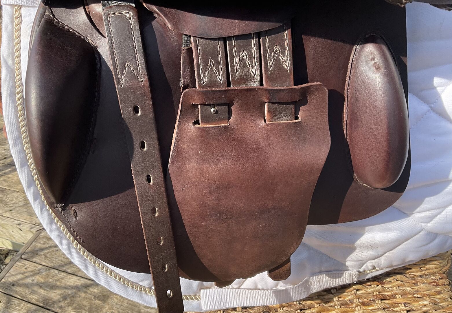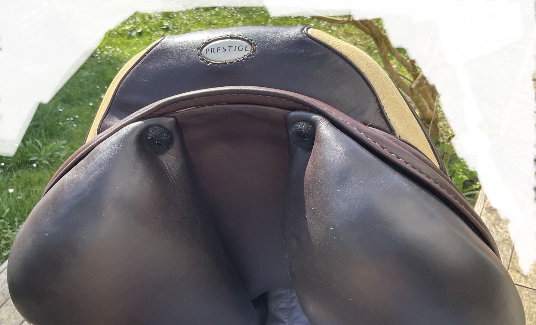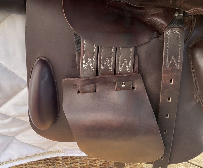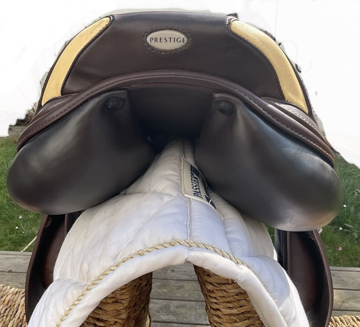 Prestige hoppsadel Classic Paris 17"/35 i mycket gott skick - Mycket fin och bekväm hoppsadel, även lämplig för ridning och normalt dressyrarbete. Inga skador eller repor, stoppningen är fast och har blivit omstoppad. Sadeln har en 35 mm kammare och en 17 mm sits, vilket är lämpligt för små och normalstora ryttare. Färgen är cognac, en varm nyans av brunt, lädret är mycket mjukt och dubbelt. Sadeln köptes 2023, originalfakturan från sadelmakaren finns tillgänglig (NP: 3200 euro) Stigläder i matchande färg (135 cm) och en Passier anatomisk lädergördel för att matcha (125 cm) kan köpas på begäran och mot en extra kostnad. Allt är i mycket gott skick och väl omhändertaget. Sadeln har alltid förvarats i en torr sadelkammare. Sulans bredd kan justeras av en sadelmakare. De vita övermålningarna på bilderna är endast för personligt skydd och om något inte känns igen, vänligen fråga bara. Frakt och insamling möjlig. Allvarliga frågor kommer att besvaras med nöje. Inget byte.