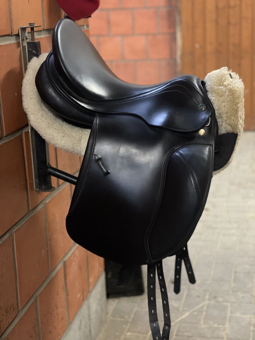 Prestige Milano dressyrsadel - Jag säljer min Prestige Milano dressyrsadel, som bara är 4 år gammal och i absolut nyskick. Sadeln tillverkades i slutet av 2018 och har bara använts i 6 månader. Den har alltid varit välskött och har regelbundet presenterats för sadelmakare för inspektion, sadeln har också alltid varit regelbundet vadderad. Jag köpte den till min tidigare RB, så tyvärr passar den inte mig och är alldeles för stor för mig. Sadeln har knappt några tecken på användning, sadelklaffen är så gott som oanvänd eftersom stigbyglarna alltid satt på sadelklaffen.