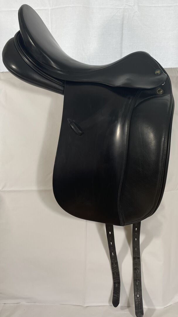 Dressyrsadeln har en djup, bekväm sits och stora, mjuka framklossar under sadelklaffen. Den ullfyllda kilpanelen är lätt att justera. De bakre sadelgjordsbanden har en V-upphängning, de främre sadelgjordsbanden har modifierats (se foton). Sadelgjordens bredd kan justeras.