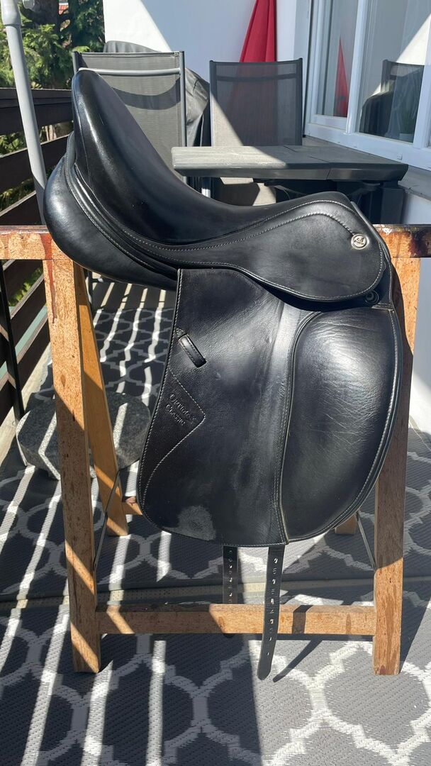 - Sittyta 17" - Sadeln är mycket välskött, har endast synliga tecken på användning på sadelklaffen när läder kommer på läder - Sadel användes under åren max. 2 år, eftersom vår stora tyvärr ofta var sjuk och inte kunde ridas, nu är han pensionär, inte längre ridbar, så vi ger bort sadeln. Kammarbredd vid köp 32, breddades till 34.