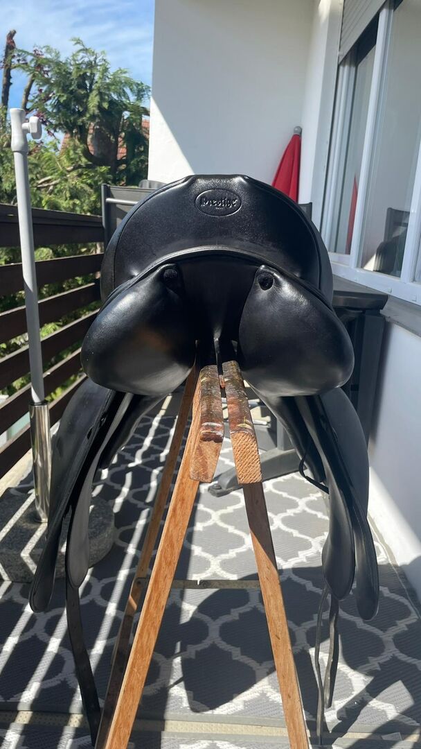 Prestige Optimax Classic lädersadel - Jag säljer en Presige Optimax Classic dressyrsadel i läder inkl. original sadelklaff.