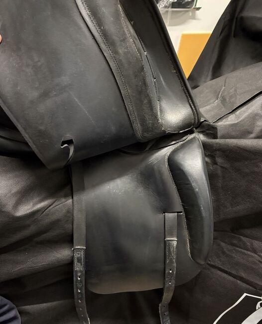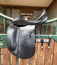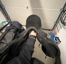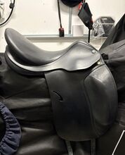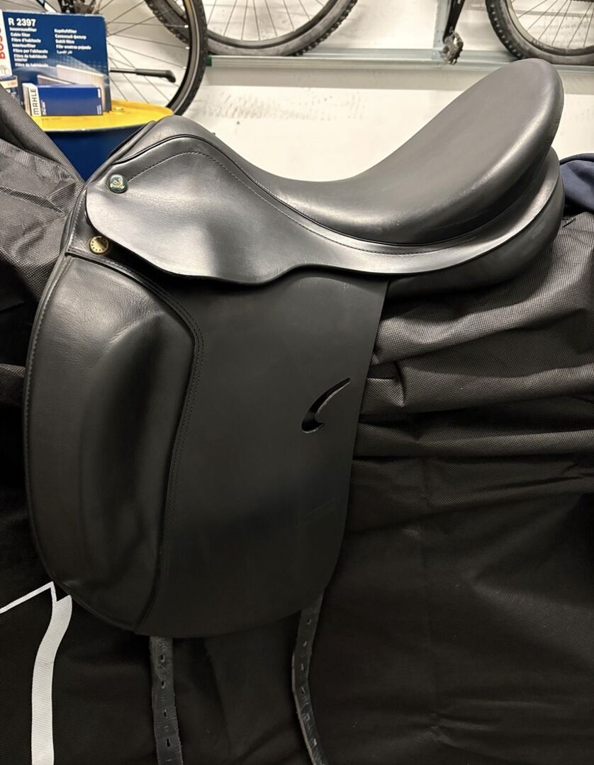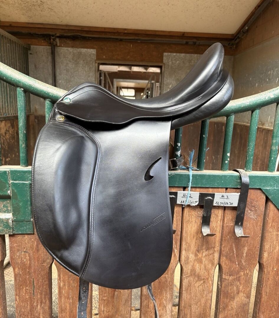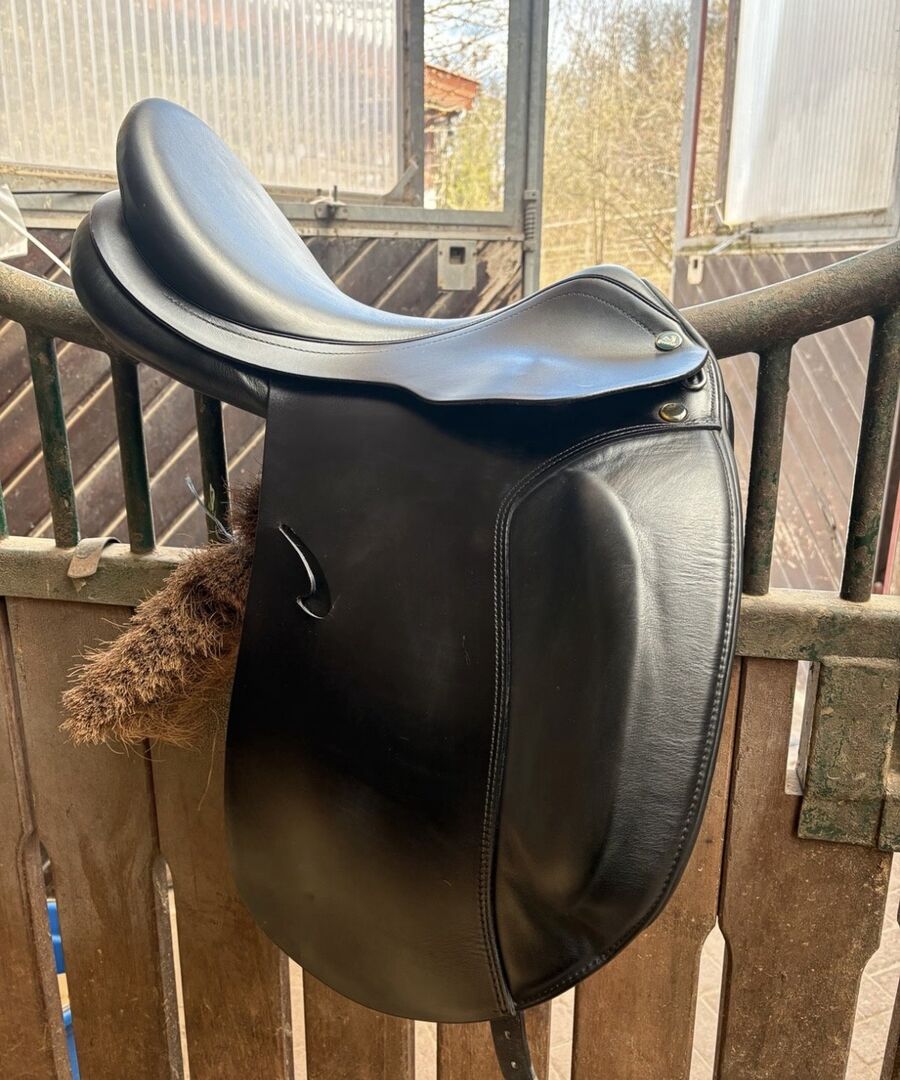På grund av att jag har slutat med dressyr är min Prestige Roma dressyrsadel med 17 tum och en ursprunglig kammarbredd på 35 till salu. Kammarbredden har dock ändrats till 33/34. Sadeln har använts lite och alltid varit väl omhändertagen. Sadeln har en djup sits och en stor klaff. Sadeln är superbekväm att sitta i och trycker inte ner ryttaren i en stolsits. Säljs med sadelkudde men utan stigläder och stigbyglar. Vänligen se bilderna för mer information. Mått på kontaktytan på bilderna 14-18 tillgängliga.