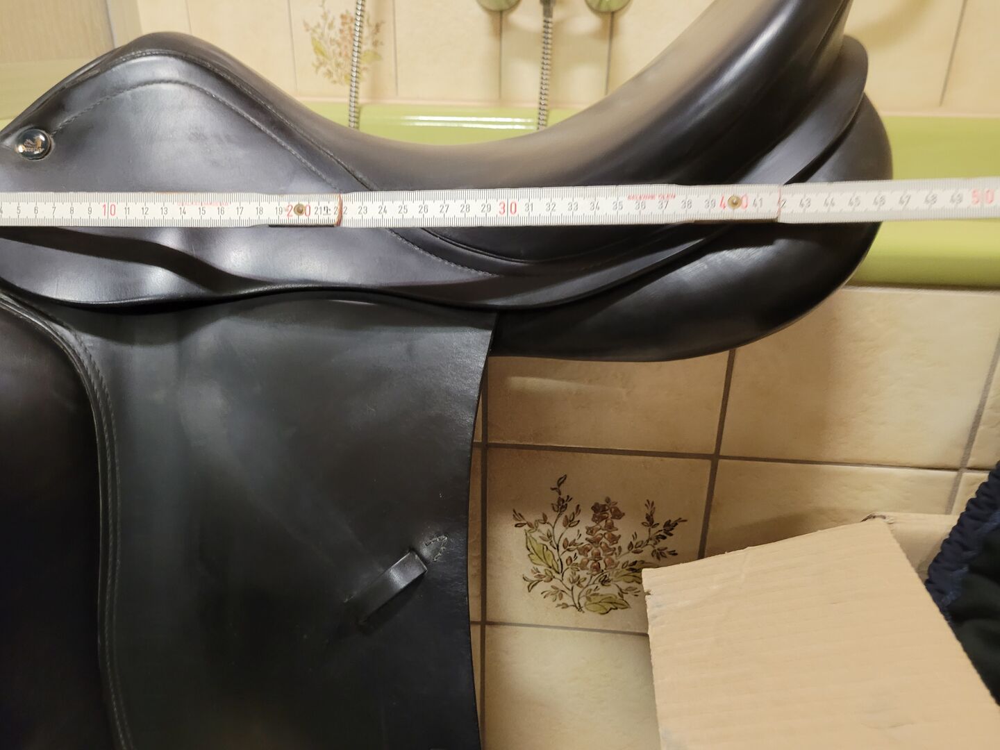 Sadeln stoppades om för ungefär två år sedan och har inte använts på ungefär ett år på grund av hästens sjukdom. Det är en mycket bekväm sadel som ger bra stöd tack vare de stora pommlarna, men utan att begränsa ryttaren.